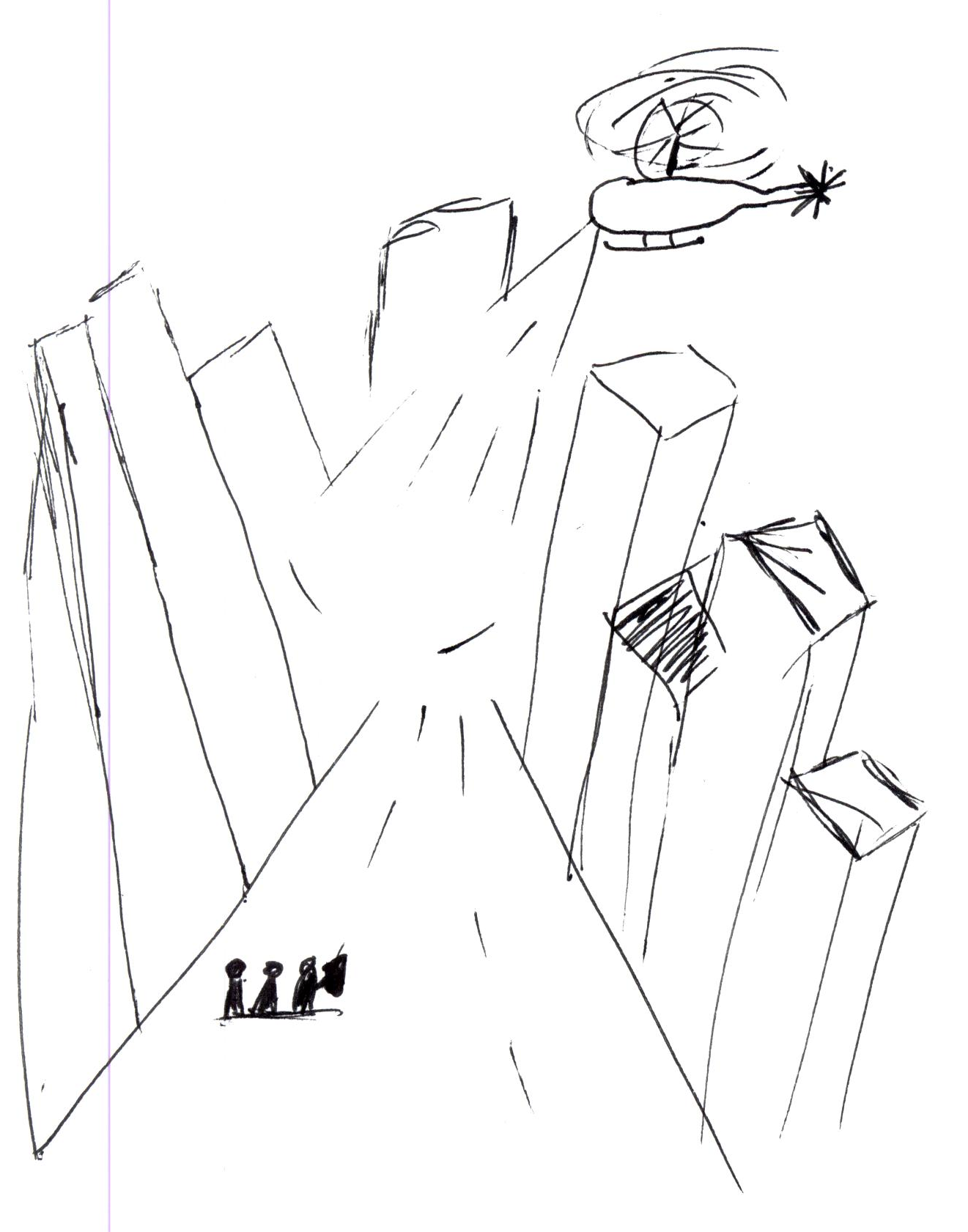 In the heart of Los Angeles, a major street with no pedestrians, no vehicles, everything empty, except for two helicopters circling far off skyscrapers with their lights shining on the ground.  It was a scene out of a post-apocalypse movie, the mad city quiet for a moment just before the sky goes dark and the zombies come out.